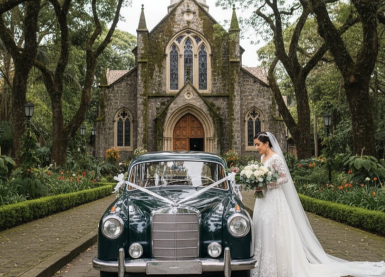 Traslado de la novia desde casa a la iglesia y espera en la iglesia